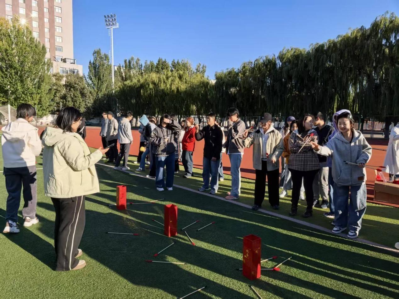 “投壶”和“水果保龄球”游戏不仅提升大家的专注力,还考验了同学们的精准度和耐心,同学们的每一次成功投掷都会赢得在场同学的阵阵掌声。