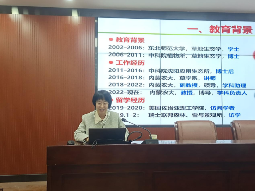 2025年10月23日下午,林学院在学院四楼会议室举办“论文创作技巧与科研工作智慧”主题“绿色讲堂”。本次讲堂邀请临沂大学资源环境学院讲师、研究生导师赵杰博士,内蒙古农业大学草业学院教授、博士生导师任海燕教授作讲座。林学院党委书记萨如拉、院长岳永杰、副院长赵鹏武、学院具有副教授职称或博士学历的教师,以及学院老师和在校研究生参加了讲堂。
