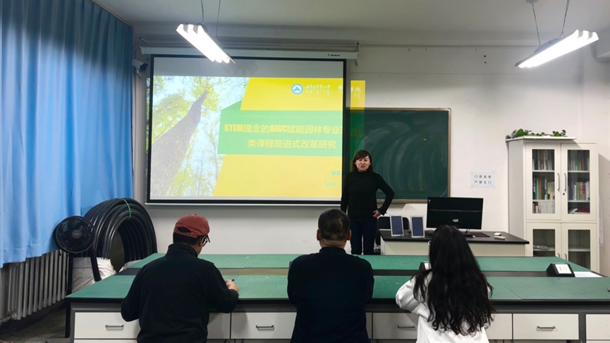 来自两系的3个课题组依次进行开题陈述,题目涵盖“以STEM理念的AIGC赋能园林专业实践类课程”“风景园林学生高质量就业融入地方美丽乡村建设校地企合作机制研究”“数字化背景下风景园林专业劳动及美育教育实践”等创新方向。评审专家对课题的创新性和实践价值进行评价,并围绕数字化赋能模式、跨学科协作方向等内容提出建设性意见。