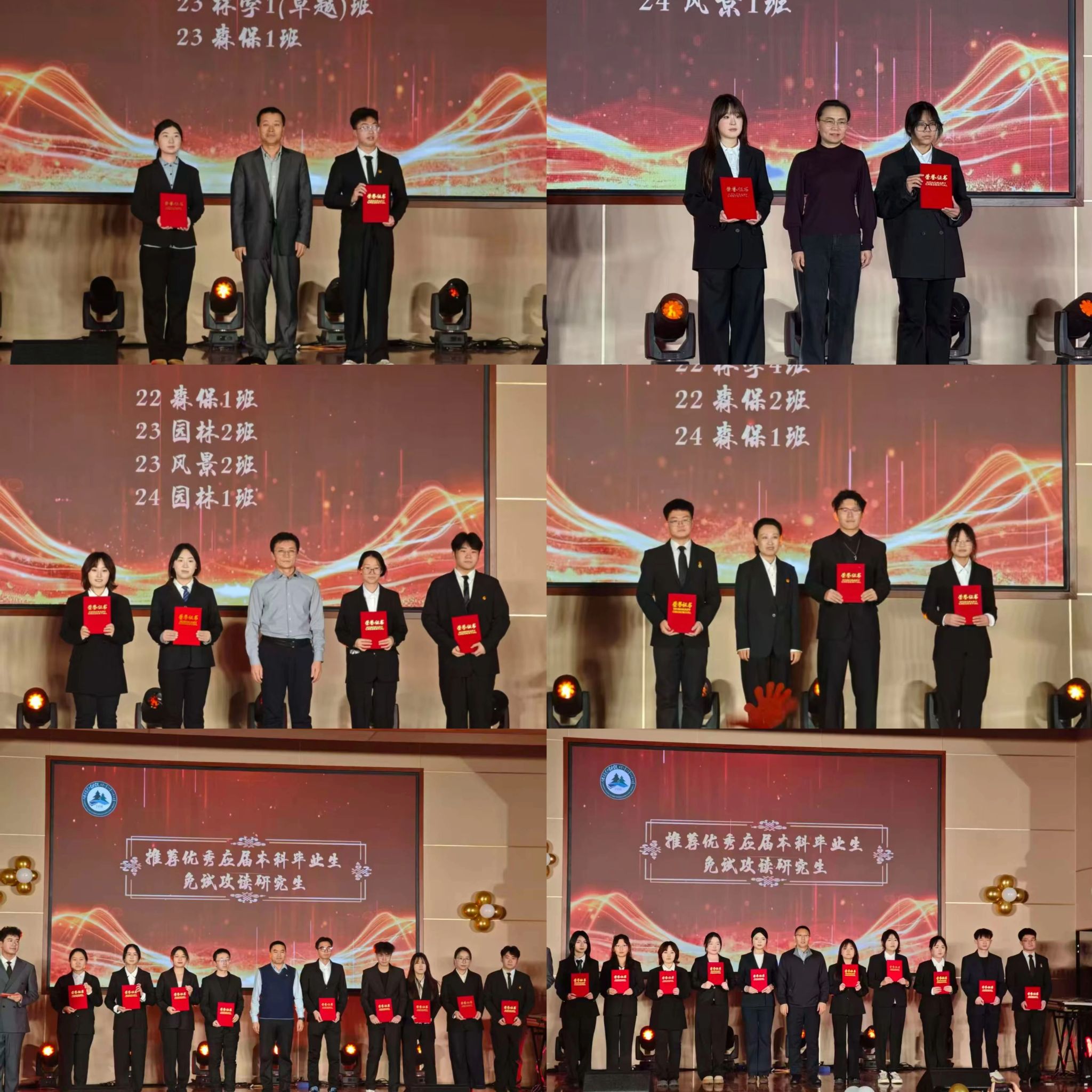 在学风表彰环节,学院邀请嘉宾老师们依次为校级优良学风标兵班、校级优良学风进步班、院级优良学风标兵班、院级优良学风进步班和推荐优秀应届本科毕业生免试攻读研究生颁奖。