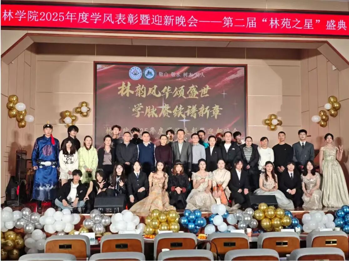 2025年12月14日晚,林学院于西区8号教研楼隆重举办"林韵风华颂盛世,学脉赓续谱新章"学风表彰暨迎新晚会—第二届“林苑之星”盛典。本次活动旨在表彰优良学风、迎接2025级新生、搭建文艺展示平台,并为同学们营造良好的学习氛围。