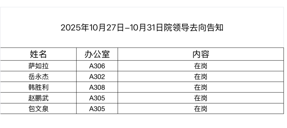 2025年10月27日-10月31日院领导去向告知
