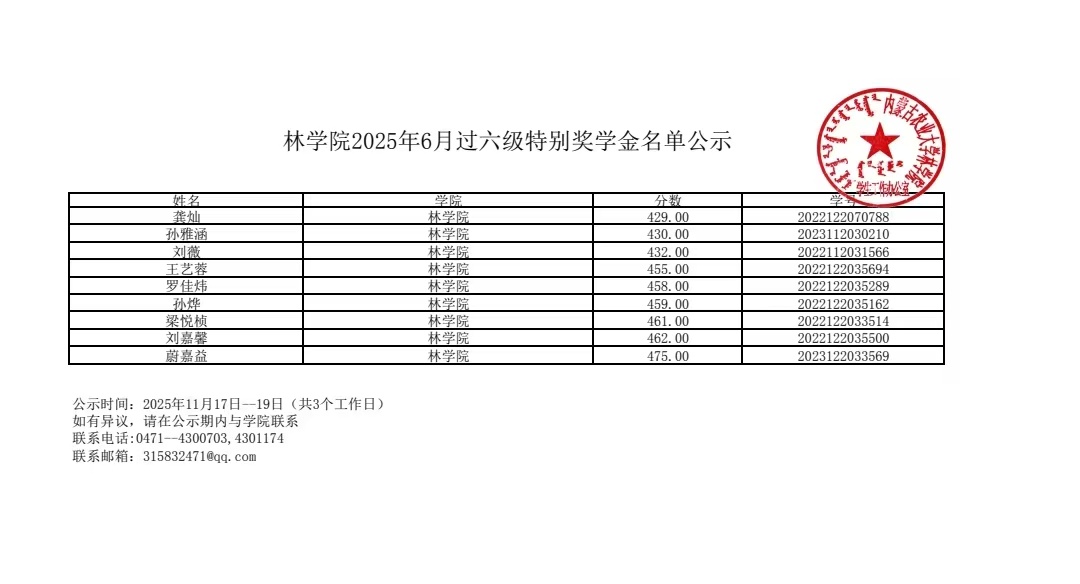 上一条:林学院2024--2025学年第二学期校级优秀学生奖学金和单项奖学金评选结果公示