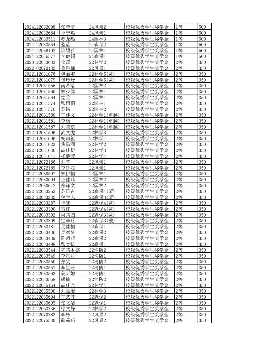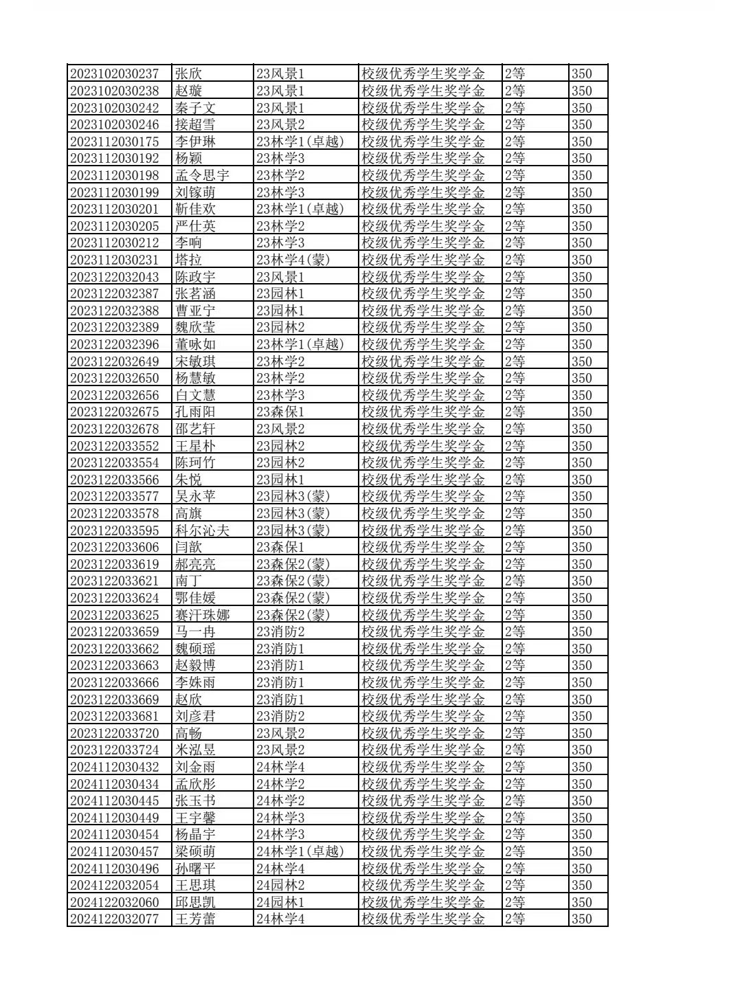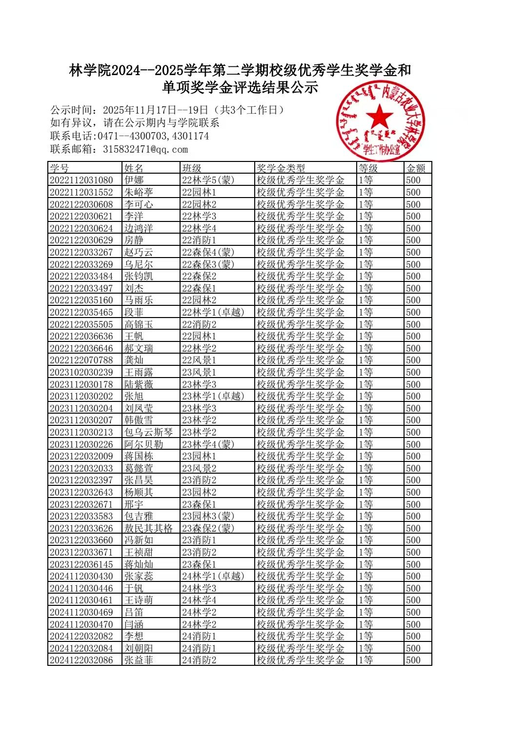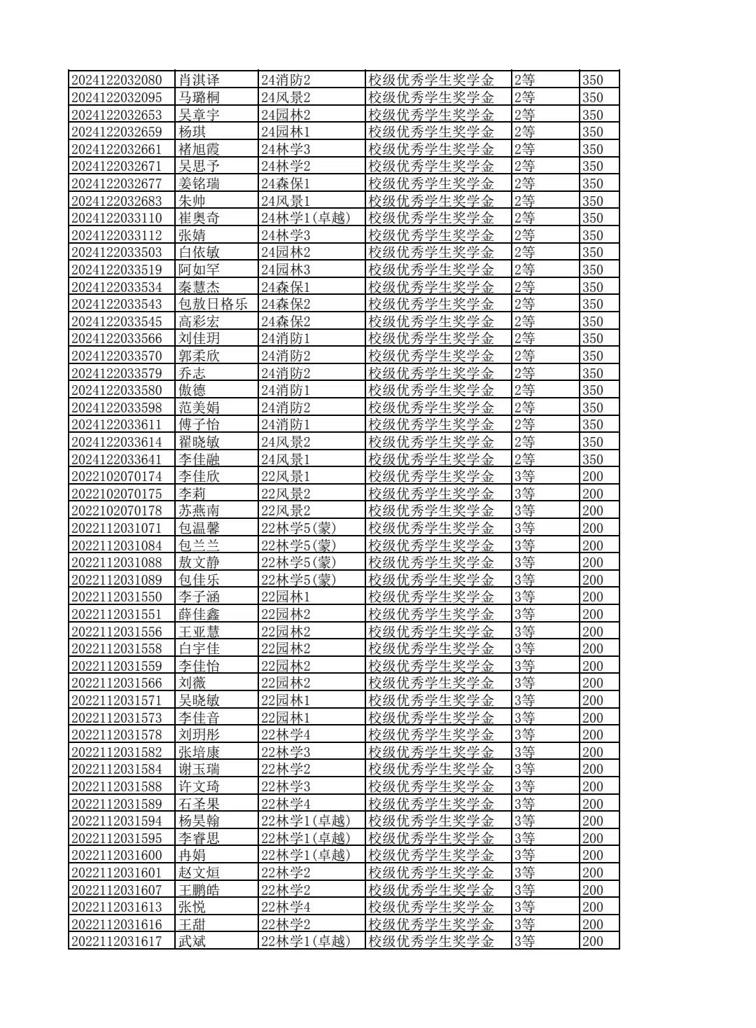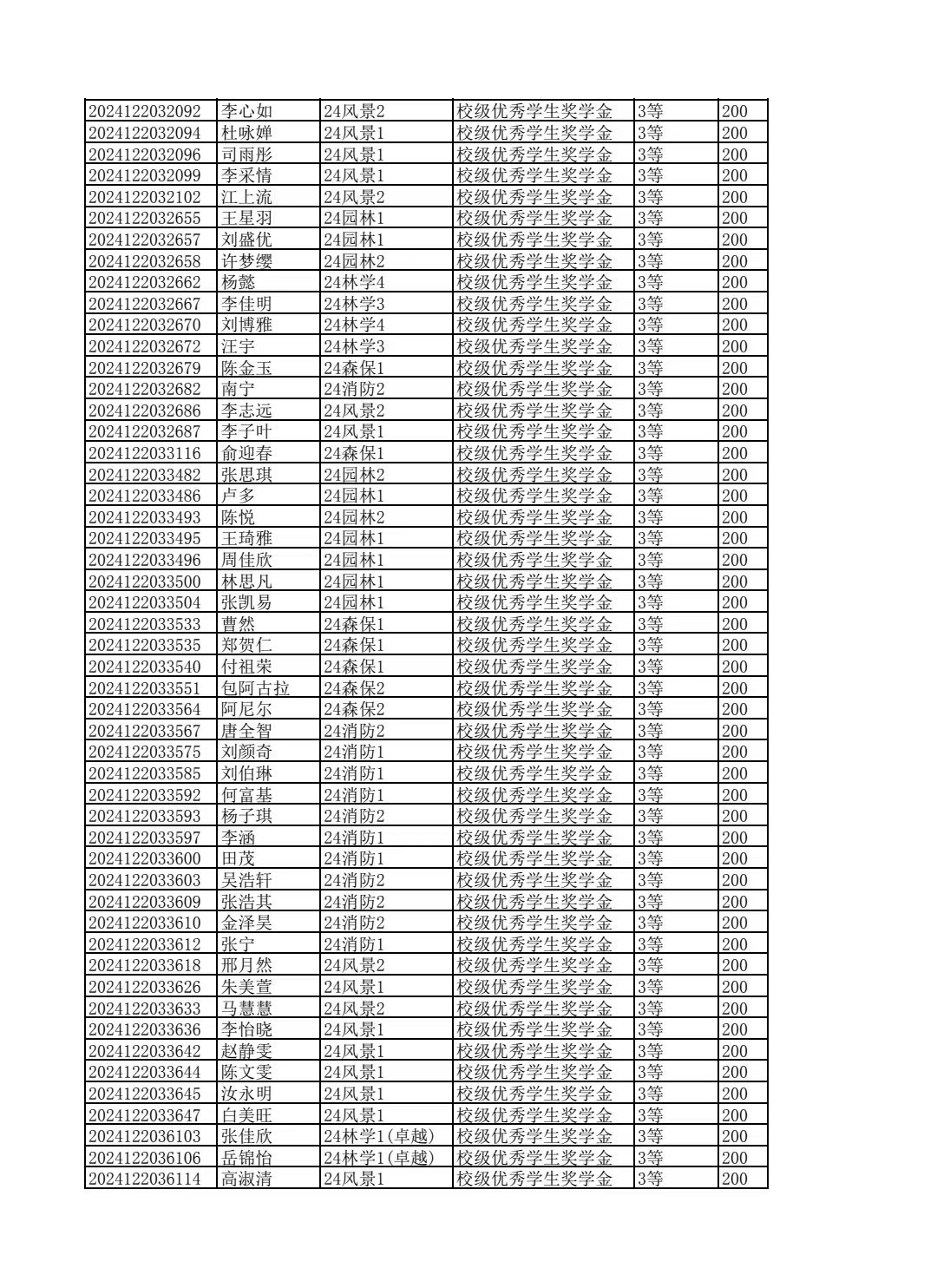 林学院2024--2025学年第二学期校级优秀学生奖学金和单项奖学金评选结果公示