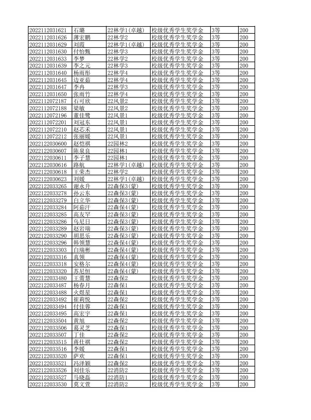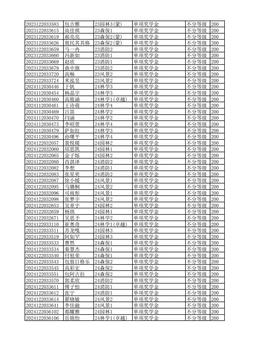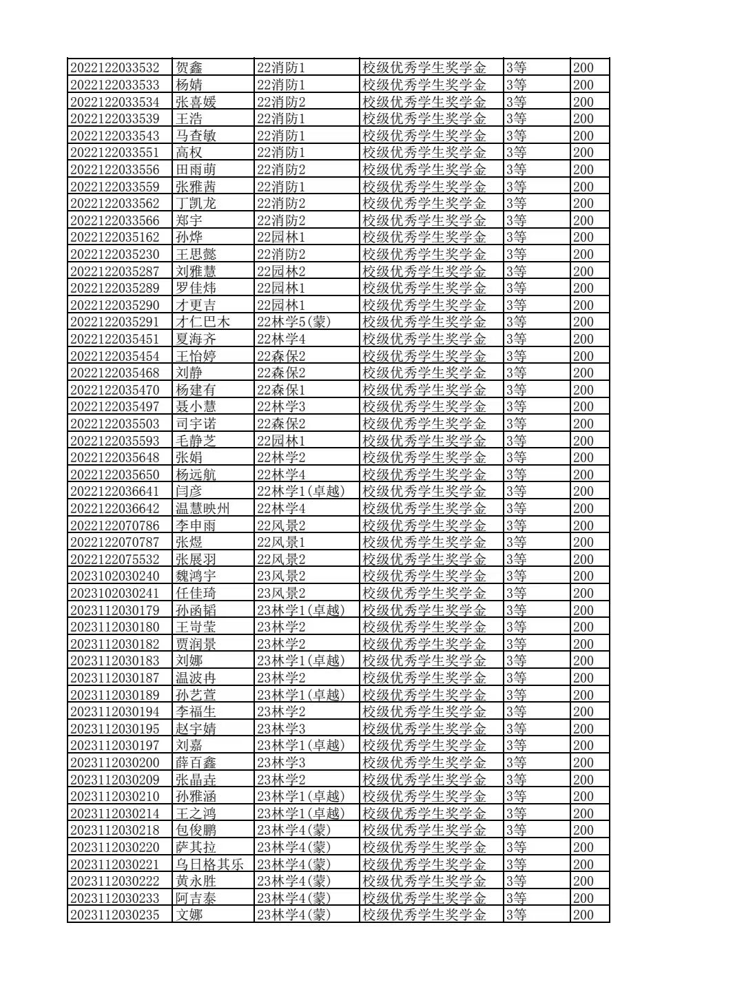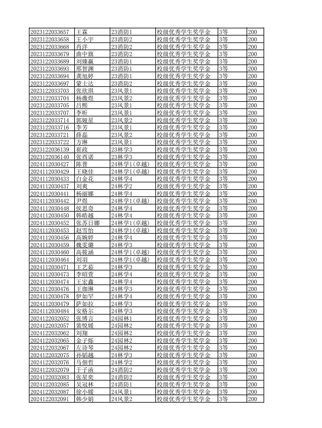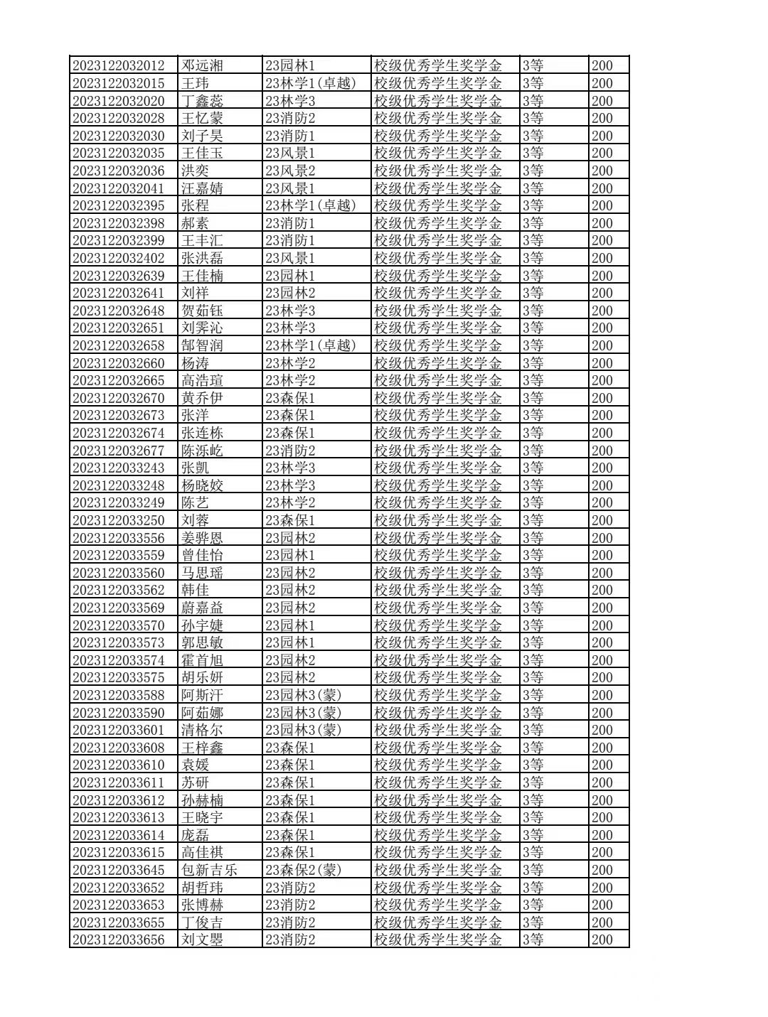 林学院2024--2025学年第二学期校级优秀学生奖学金和单项奖学金评选结果公示
